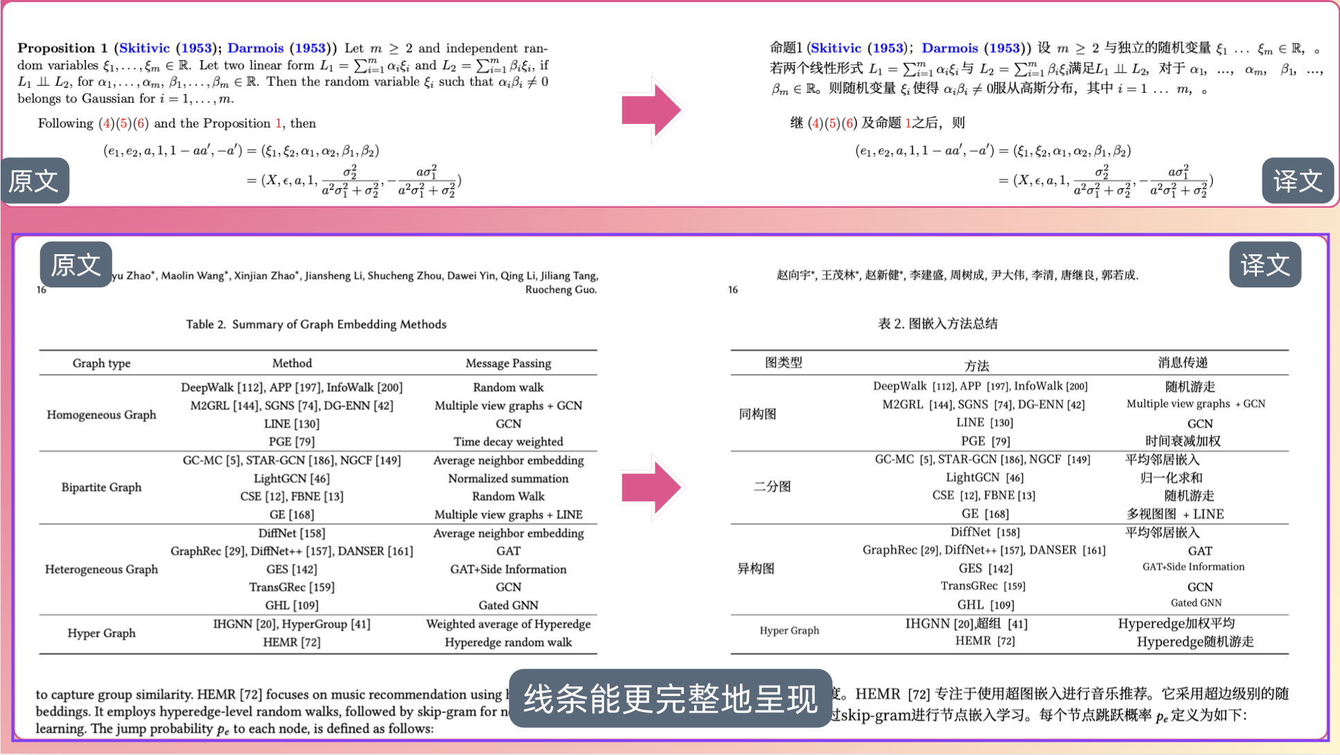 现在,经过多次迭代优化,表格和公式里的线条终于得以保留,译文的排版也更接近原始文件了——