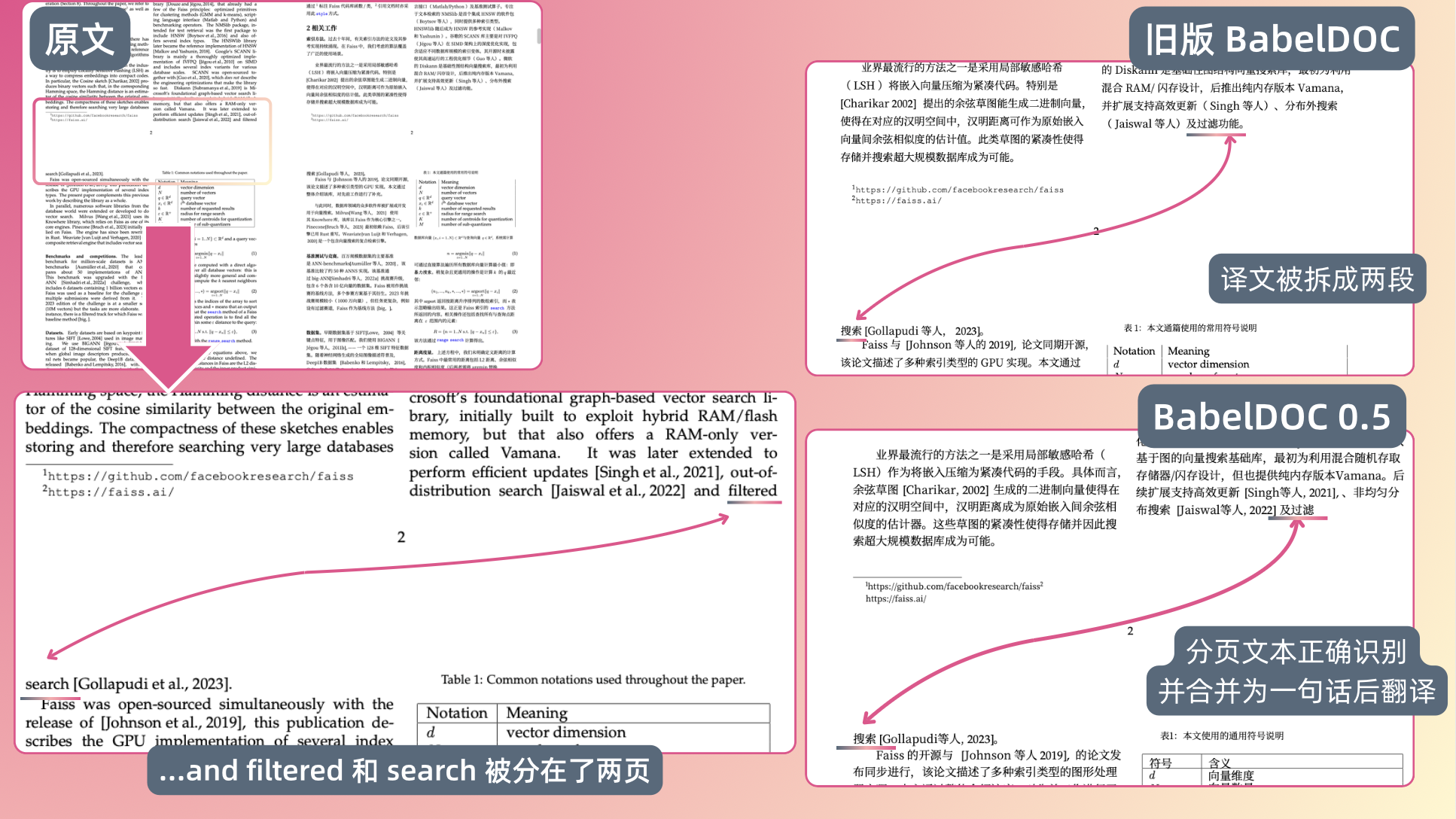 使用旧版 BabelDOC 翻译 PDF 时,如果一句话正好跨栏或跨页,就会被拆开翻译,导致译文断裂、不连贯。