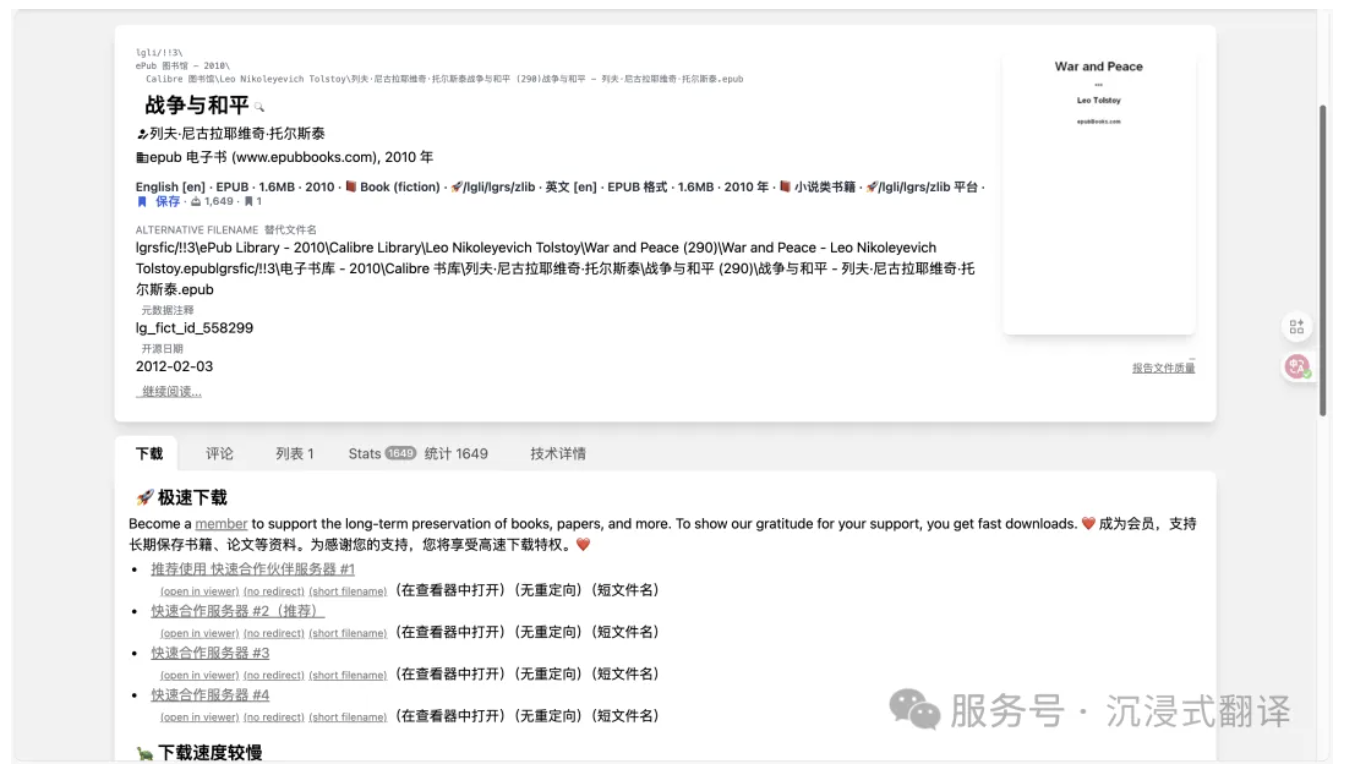在 Anna’s Archive 上,你可以通过书名、作者、ISBN 或关键词进行检索,支持多语种搜索,也能按照出版时间、文件类型、来源等维度进行筛选。无论是专业论文、学术专著,还是小说、杂志、漫画,几乎都能找到相应的资源。每本书都会附带详细的元数据、文件格式、体积、来源库等信息。