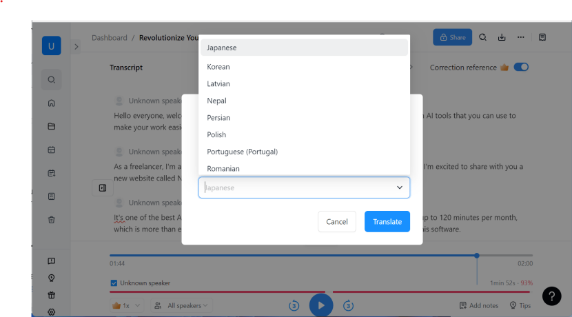 Notta supports multiple languages, and translations are generally clean for business contexts, though conversational videos may produce occasional wording mismatches.