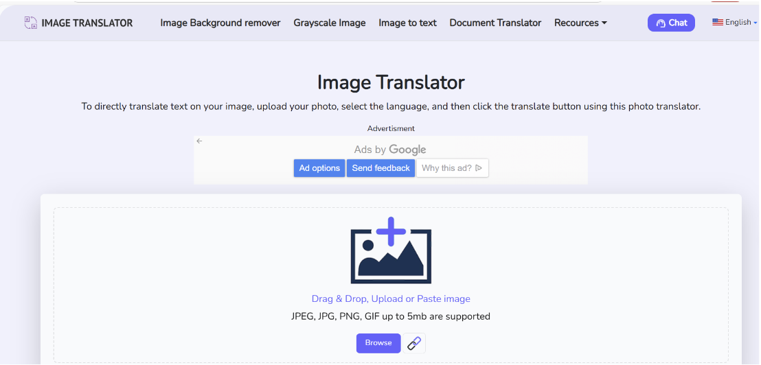 File Support: It supports JPG, PNG, GIF, and WEBP files up to 5 MB.