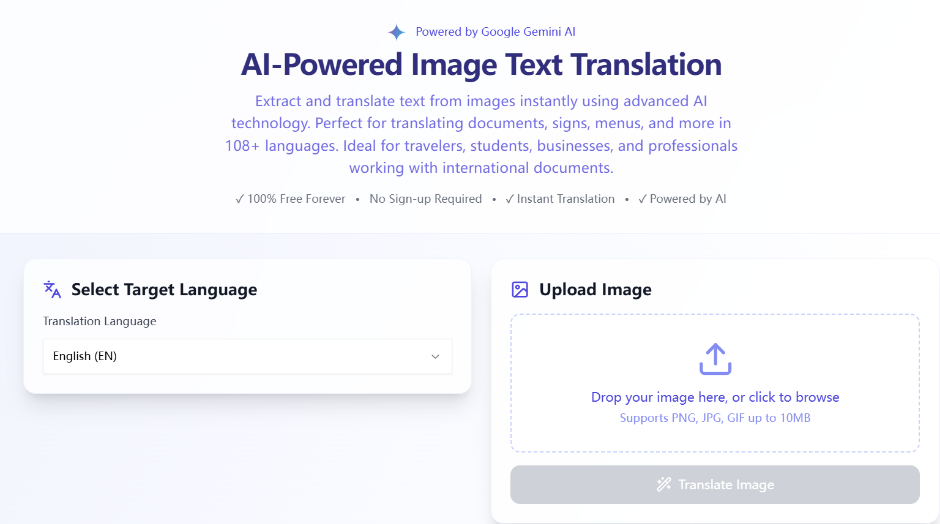This web tool uses the power of Google's Gemini AI to handle image translation.