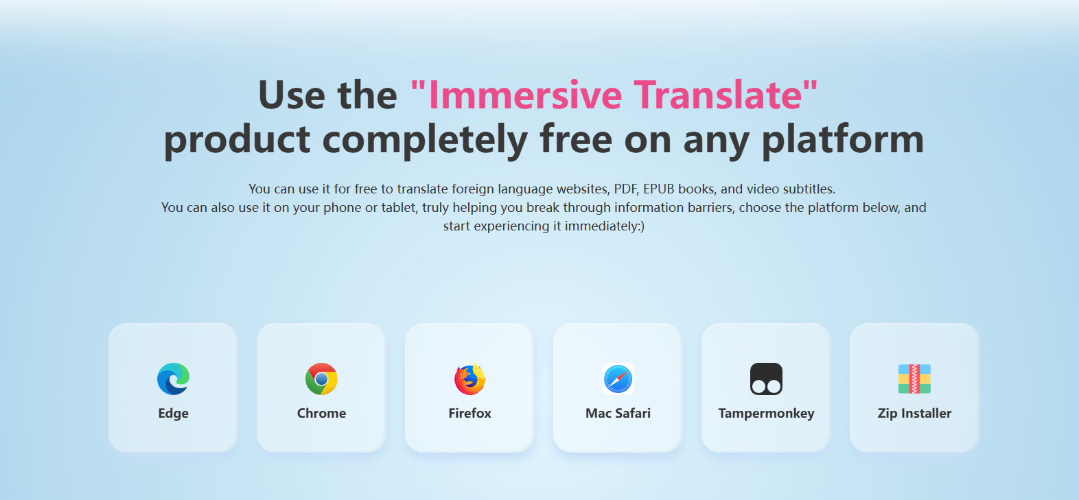 Unlike many translation tools limited to specific environments, Immersive Translate provides a consistent experience across: